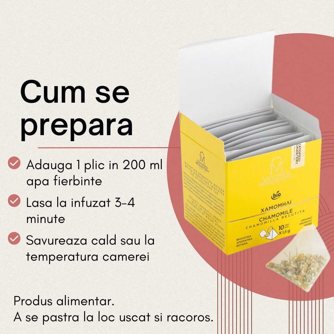 Ceai organic de musetel, apreciat pentru aroma delicata si efectul reconfortant, ideal pentru momente de relaxare si echilibru zilnic.