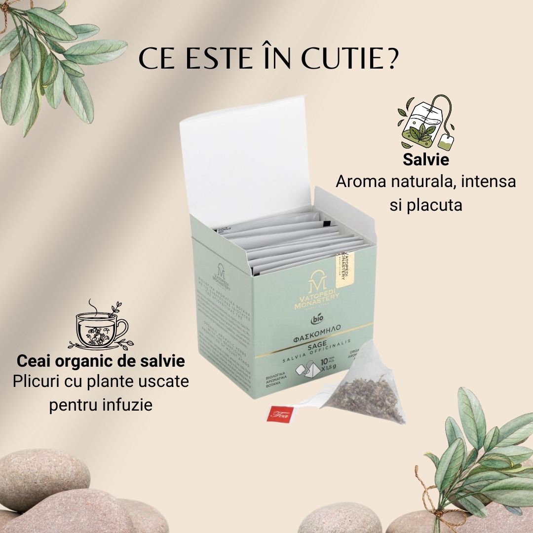 Un ceai aromat si curat, cu gust intens de salvie, usor de integrat in rutina zilnica, cu preparare rapida in pliculete.
