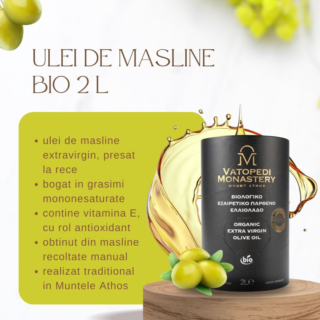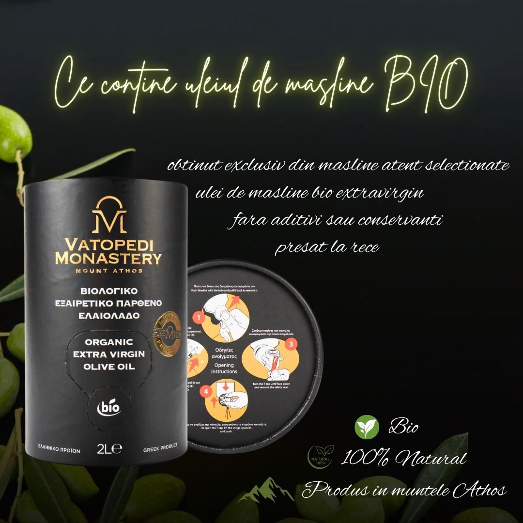 Ulei de masline BIO extravirgin de la Manastirea Vatoped (Sfantul Munte Athos) – 2 l