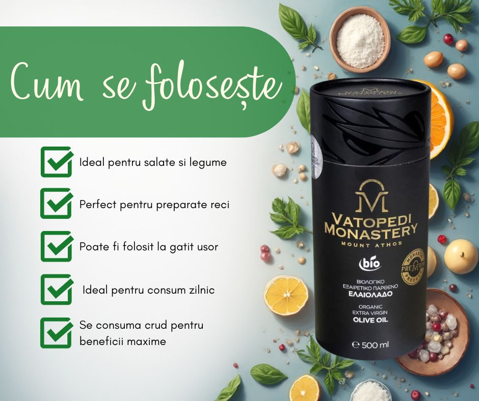 Ulei de masline BIO extravirgin de la Manastirea Vatoped (Sfantul Munte Athos) – 500 ml